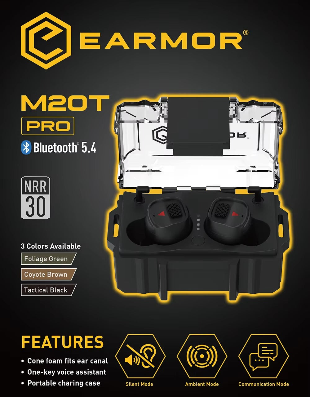 EARMOR® M20T Pro — the newly upgraded electronic Bluetooth hearing protection earbuds, featuring our proprietary eartips technology, offers exceptional high noise reduction. It significantly diminishes noise and protects hearing from gunshots, even in extremely noisy environments.
